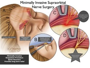 Nerve decompression relieves pressure caused by a pinched or entrapped nerve to treat chronic migraine syndrome in certain patients. In the M.I.S.O.N procedure, the supra-orbital nerve is targeted.